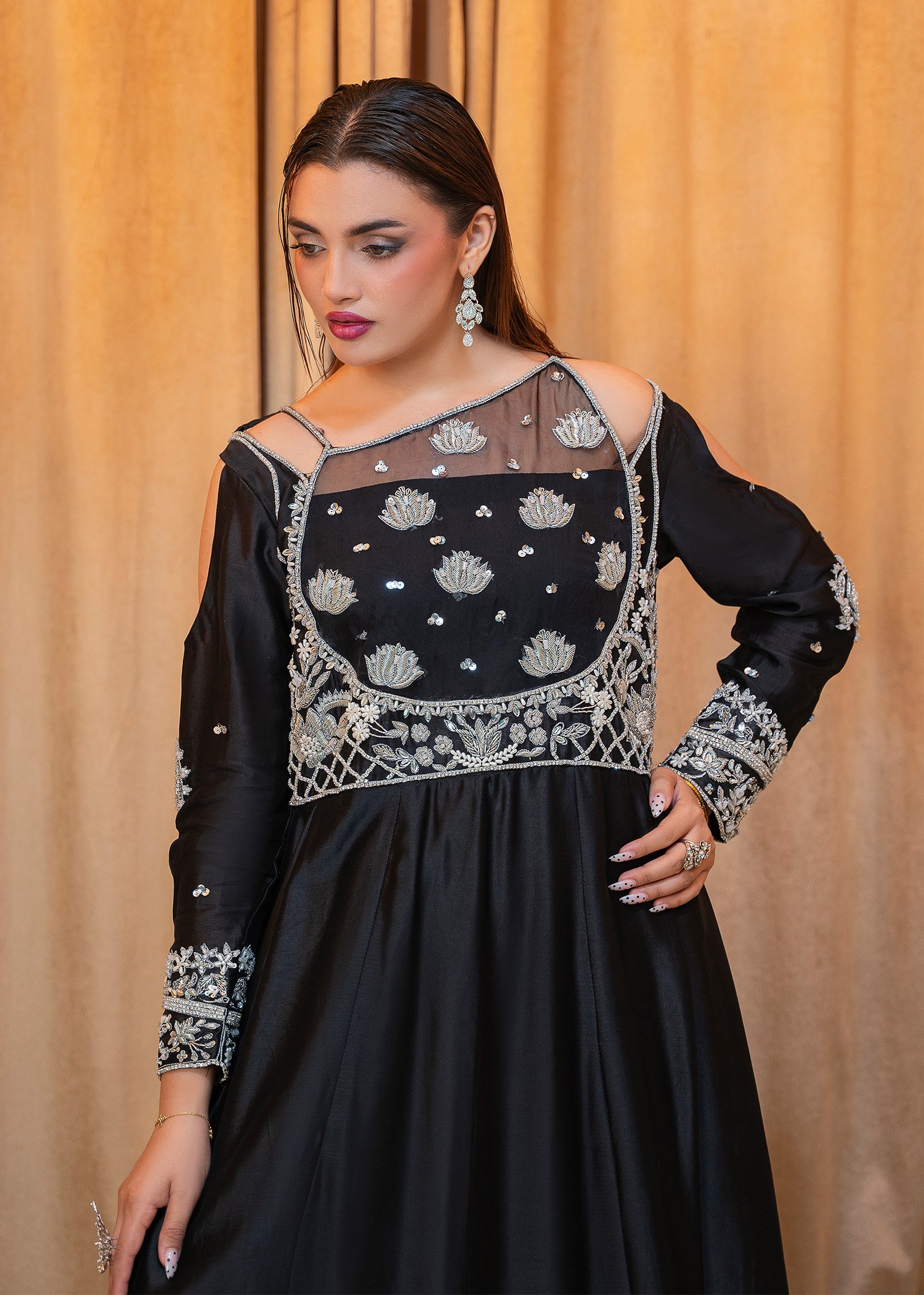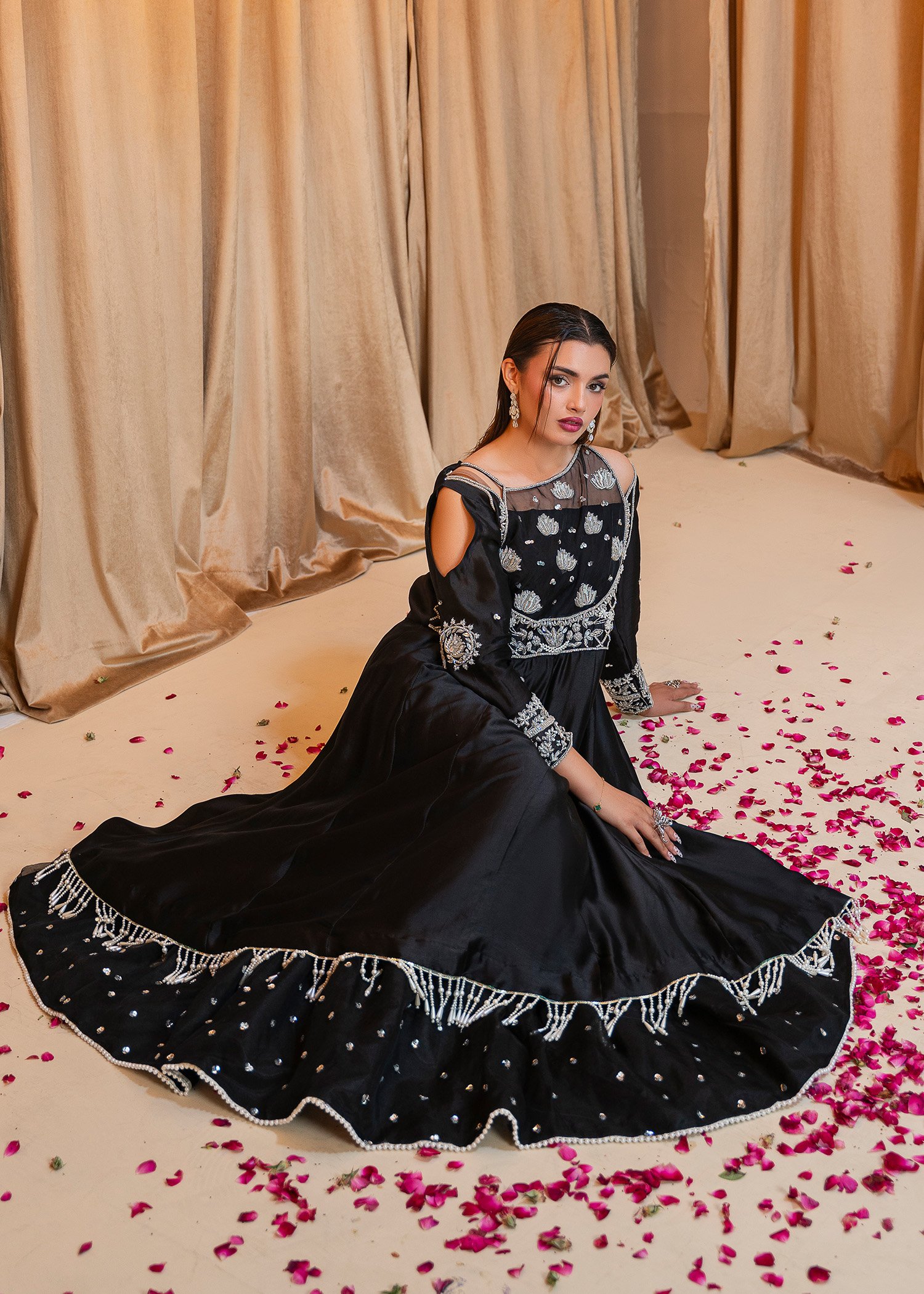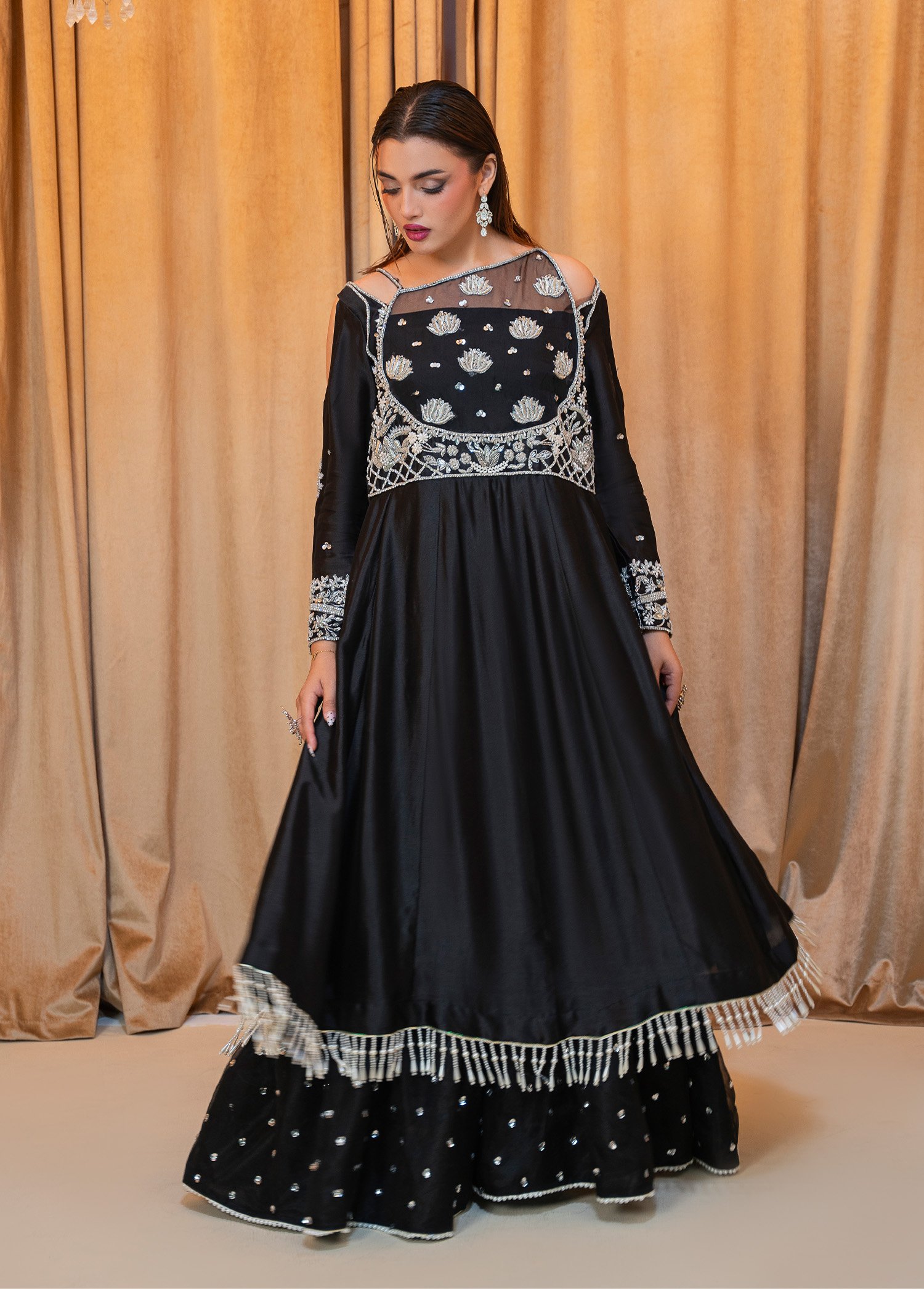 Product Description: A timeless elegance in black, Yildiz mesmerizes with intricate hand embellishments on a fusion of tissue silk and organza. Graceful yet powerful, it embodies luxury made for grand soirées and formal celebrations — a perfect harmony of mystery and allure. Yildiz is not just an outfit; it’s a statement of sophistication.