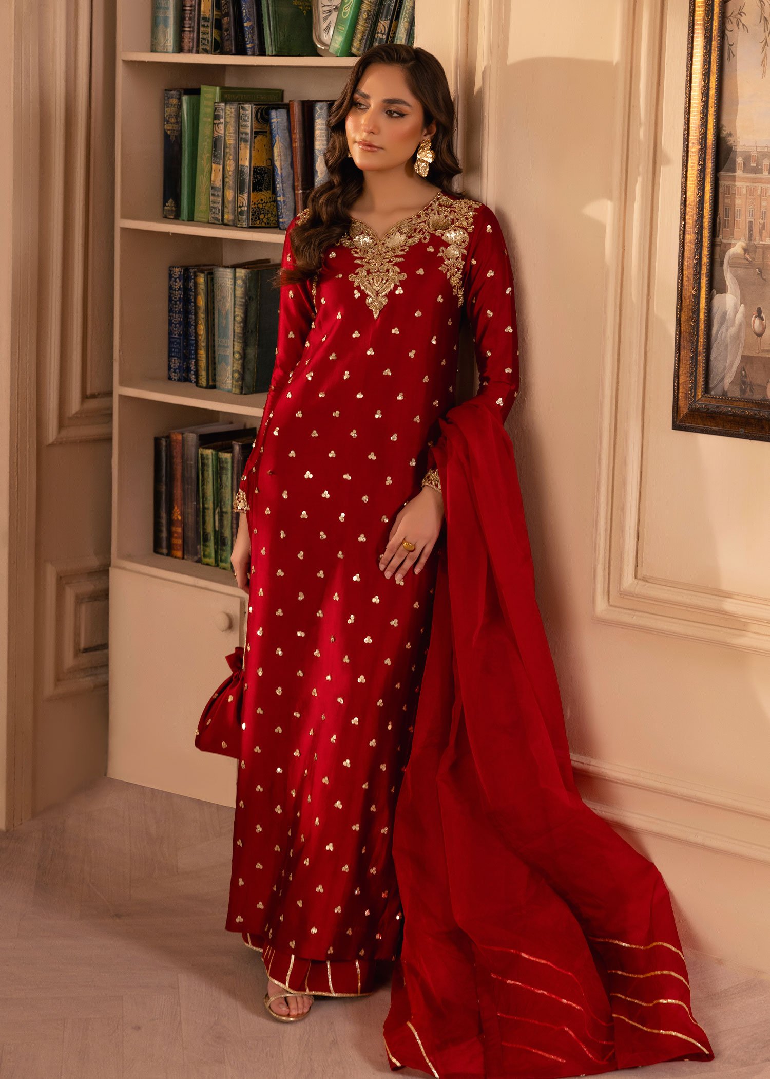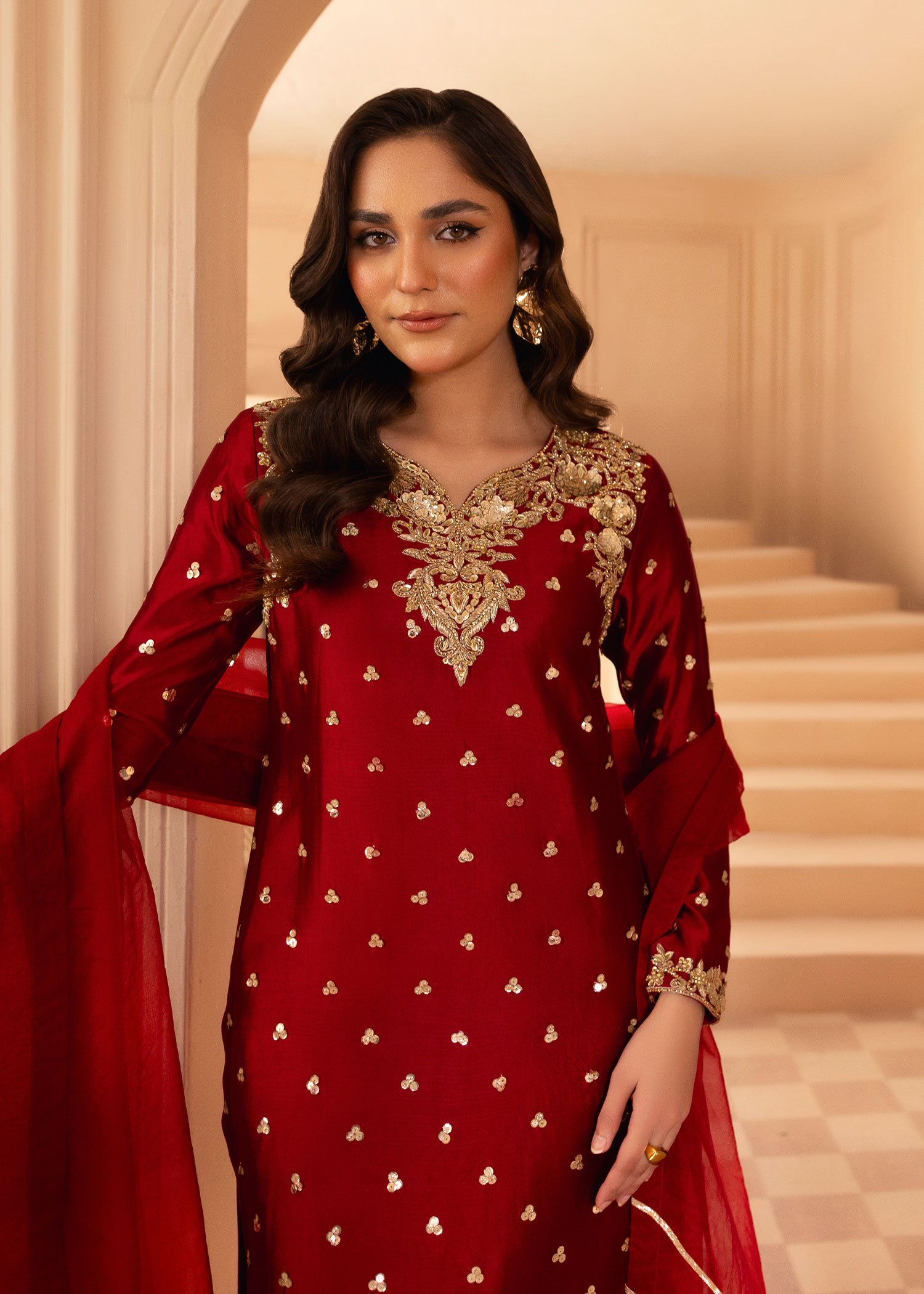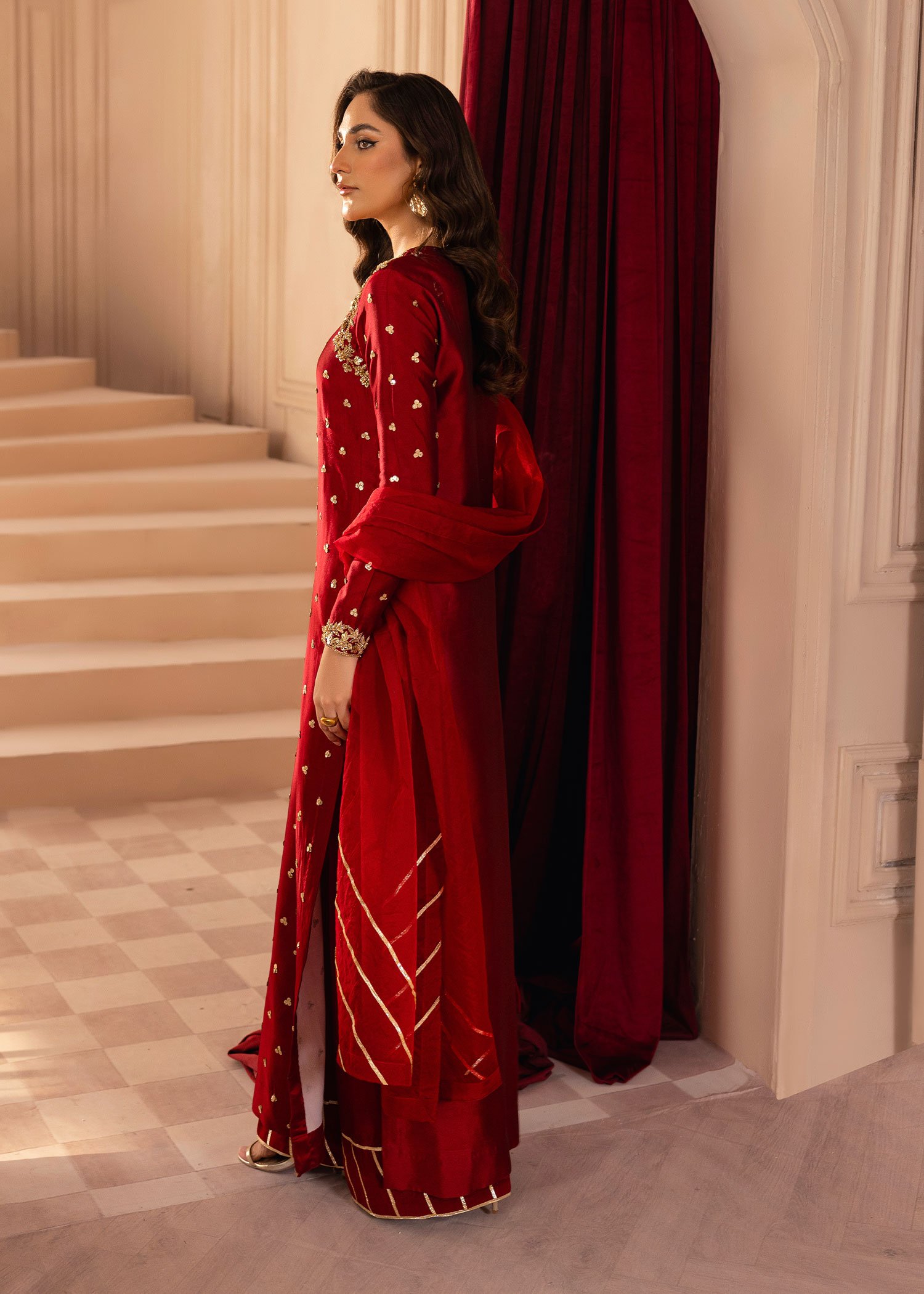 Product Description: Introducing Zahra, a masterpiece that beautifully blends traditional craftsmanship with modern elegance. This stunning outfit is adorned with exquisite hand embellishments of naqshi, dabka, sequins, pearls, and rhinestone chains, each meticulously applied to create a mesmerizing, intricate design. Zahra is perfect for those who appreciate the art of handwork and desire a statement piece that exudes sophistication and grace. Ideal for special occasions, Zahra effortlessly combines timeless beauty with contemporary allure.