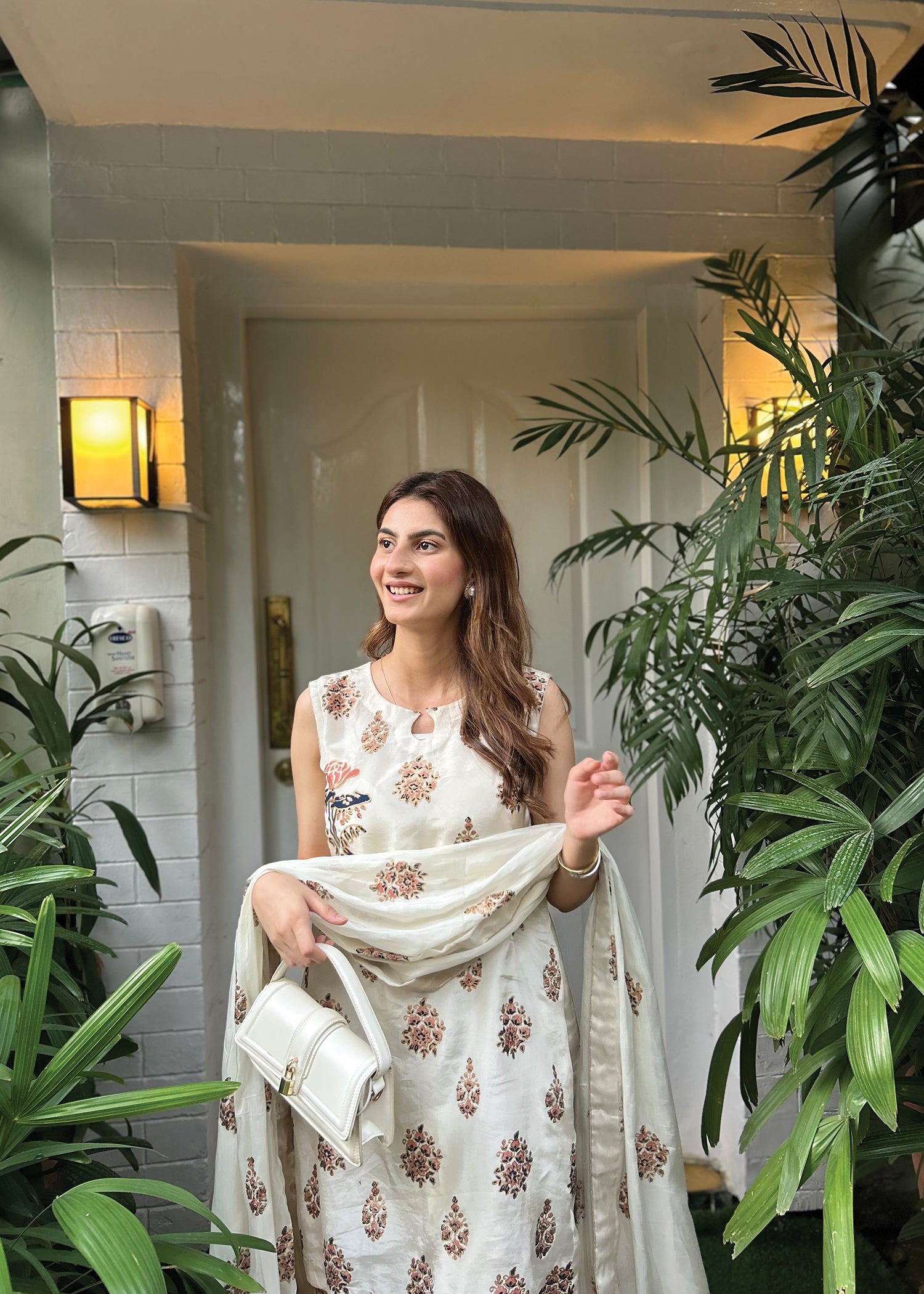 Introducing Mystique, a graceful ensemble that celebrates tradition through the art of block printing. Its minimalistic aesthetic is elevated by heritage craftsmanship, offering a timeless look that transcends trends. Light, breathable, and effortlessly elegant, this piece is perfect for cultural gatherings, day events, or a graceful festive moment. Mystique is simplicity redefined with a soulful, artistic touch.