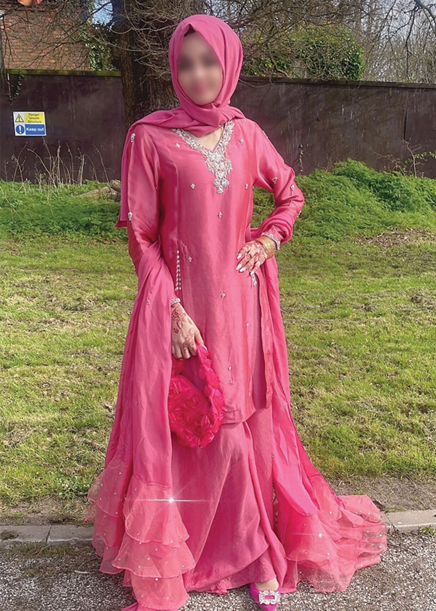 Product Description:Introducing Rosalie, a stunning fusion of traditional artistry and contemporary glamour. This exquisite piece is adorned with meticulous hand embellishments of naqshi, dabka, sequins, pearls, and rhinestone chains, each detail thoughtfully crafted to create a design that is both intricate and radiant. Rosalie’s timeless elegance makes it the perfect choice for special occasions, adding a touch of sophistication and grace to your look. Whether it’s a celebration or a glamorous evening, Rosalie promises to be the centerpiece of your ensemble, showcasing your refined taste and love for craftsmanship.