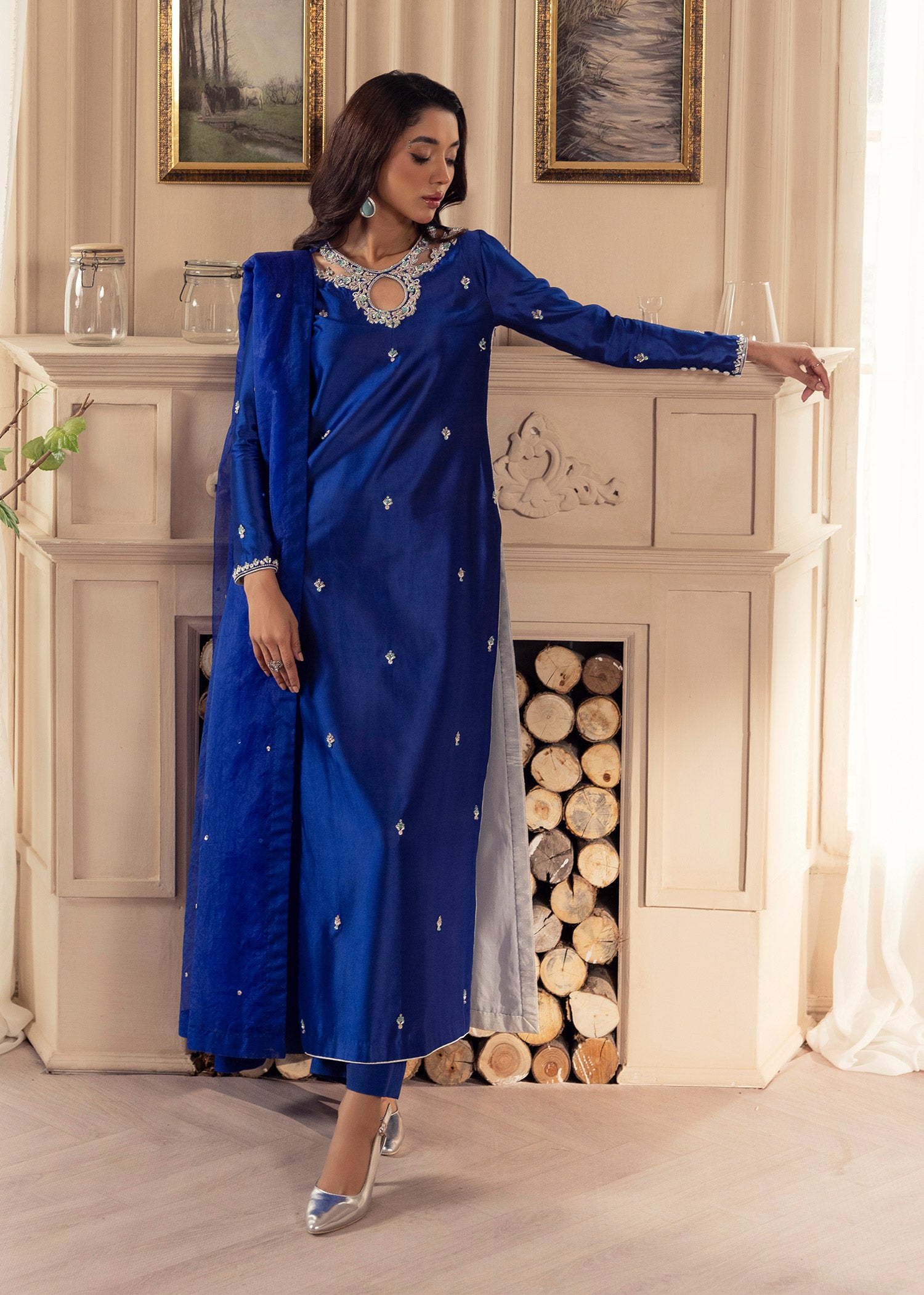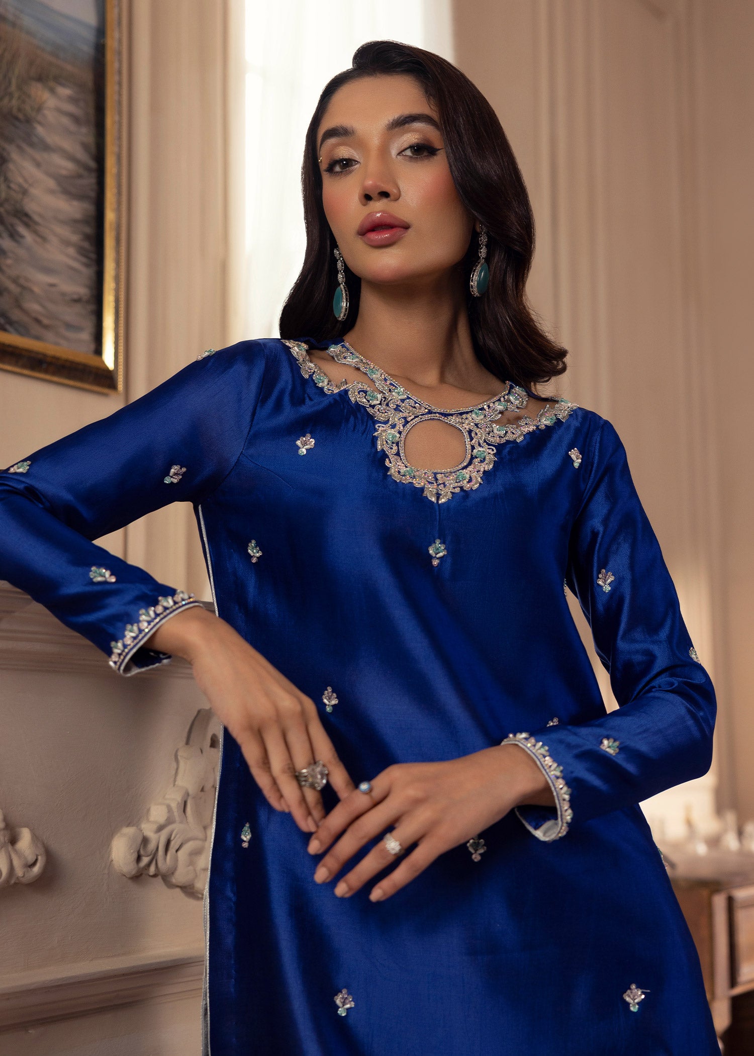 Product Description: Introducing Sapphire, a stunning piece that radiates elegance and timeless beauty. Adorned with intricate hand embellishments of naqshi, dabka, sequins, pearls, and a delicate rhinestone chain, this design is a true masterpiece. The fusion of traditional craftsmanship and modern glamour makes Sapphire the perfect choice for those seeking a luxurious, show-stopping look. Each detail has been carefully crafted to add a touch of sophistication and sparkle, ensuring you shine with every step you take. Whether for a special occasion or a memorable evening, Sapphire is your key to unforgettable style.