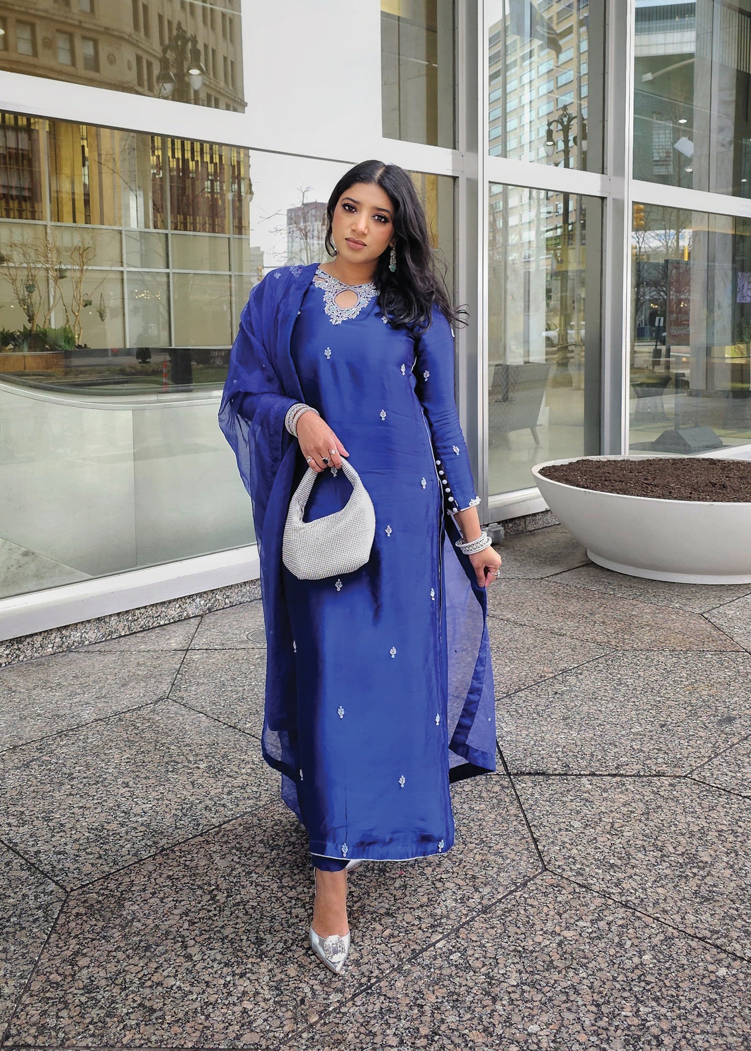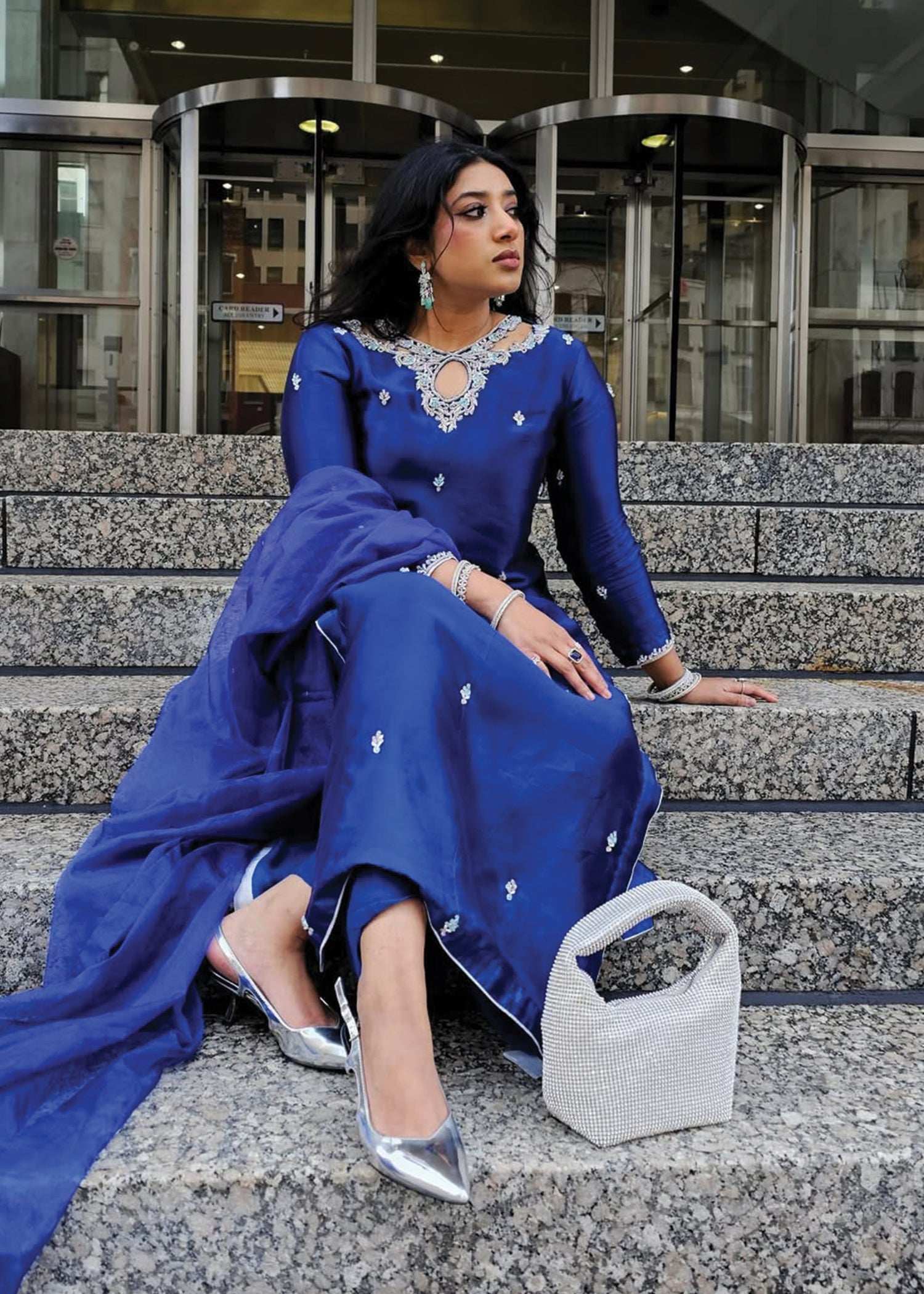 Product Description: Introducing Sapphire, a stunning piece that radiates elegance and timeless beauty. Adorned with intricate hand embellishments of naqshi, dabka, sequins, pearls, and a delicate rhinestone chain, this design is a true masterpiece. The fusion of traditional craftsmanship and modern glamour makes Sapphire the perfect choice for those seeking a luxurious, show-stopping look. Each detail has been carefully crafted to add a touch of sophistication and sparkle, ensuring you shine with every step you take. Whether for a special occasion or a memorable evening, Sapphire is your key to unforgettable style.