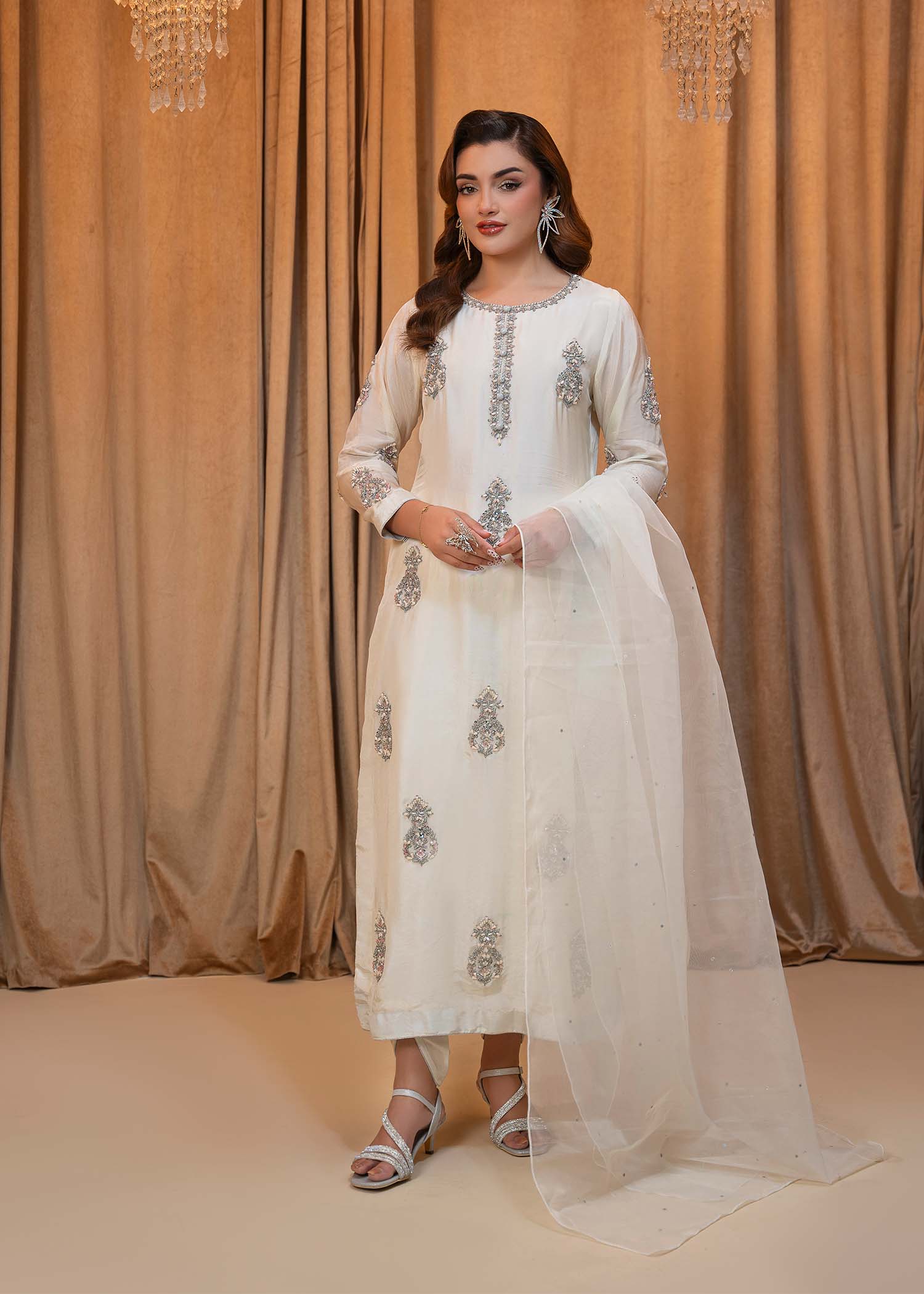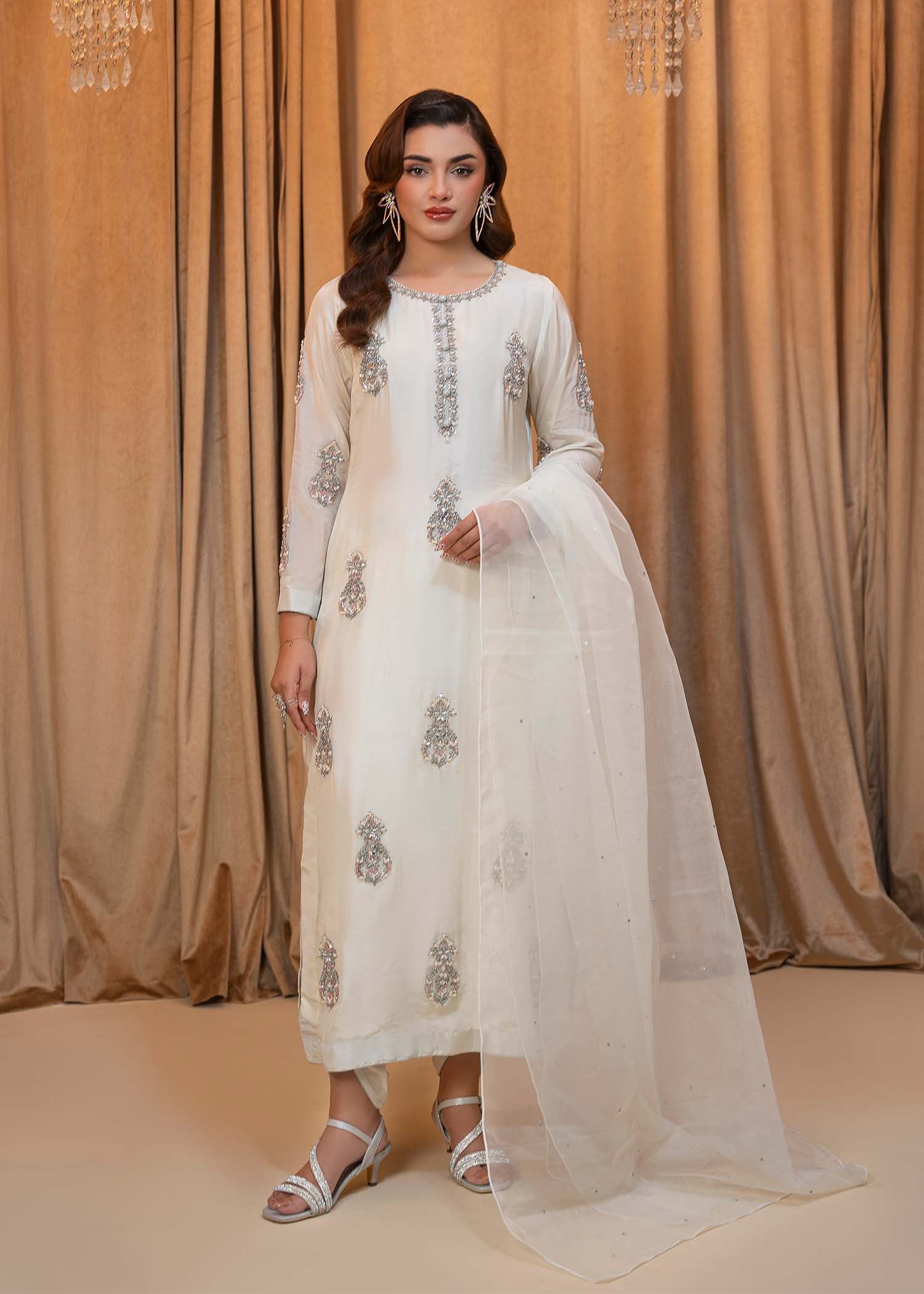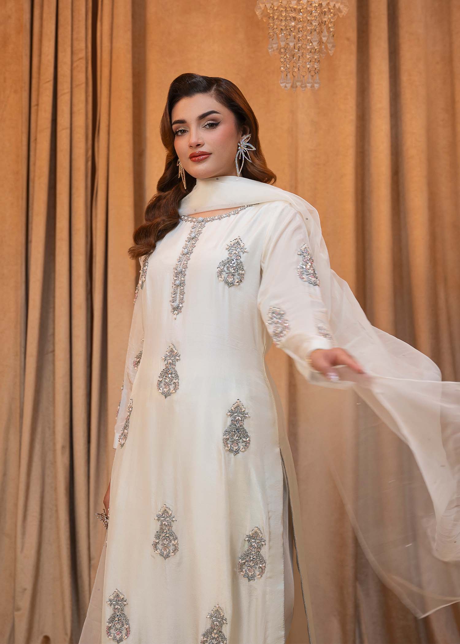 Product Description: Introducing Selin, a vision of timeless sophistication. This hand-embellished luxury ensemble exudes effortless grace and refined charm, making it the perfect choice for festive gatherings and elegant soirées.